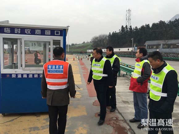 2月2日,梨温公司总经理潘皓赴赣浙界梨园站督查指导春运保畅工作,慰问奋战在一线的收费员。公司纪委副书记梅水平、工会负责人陪同。