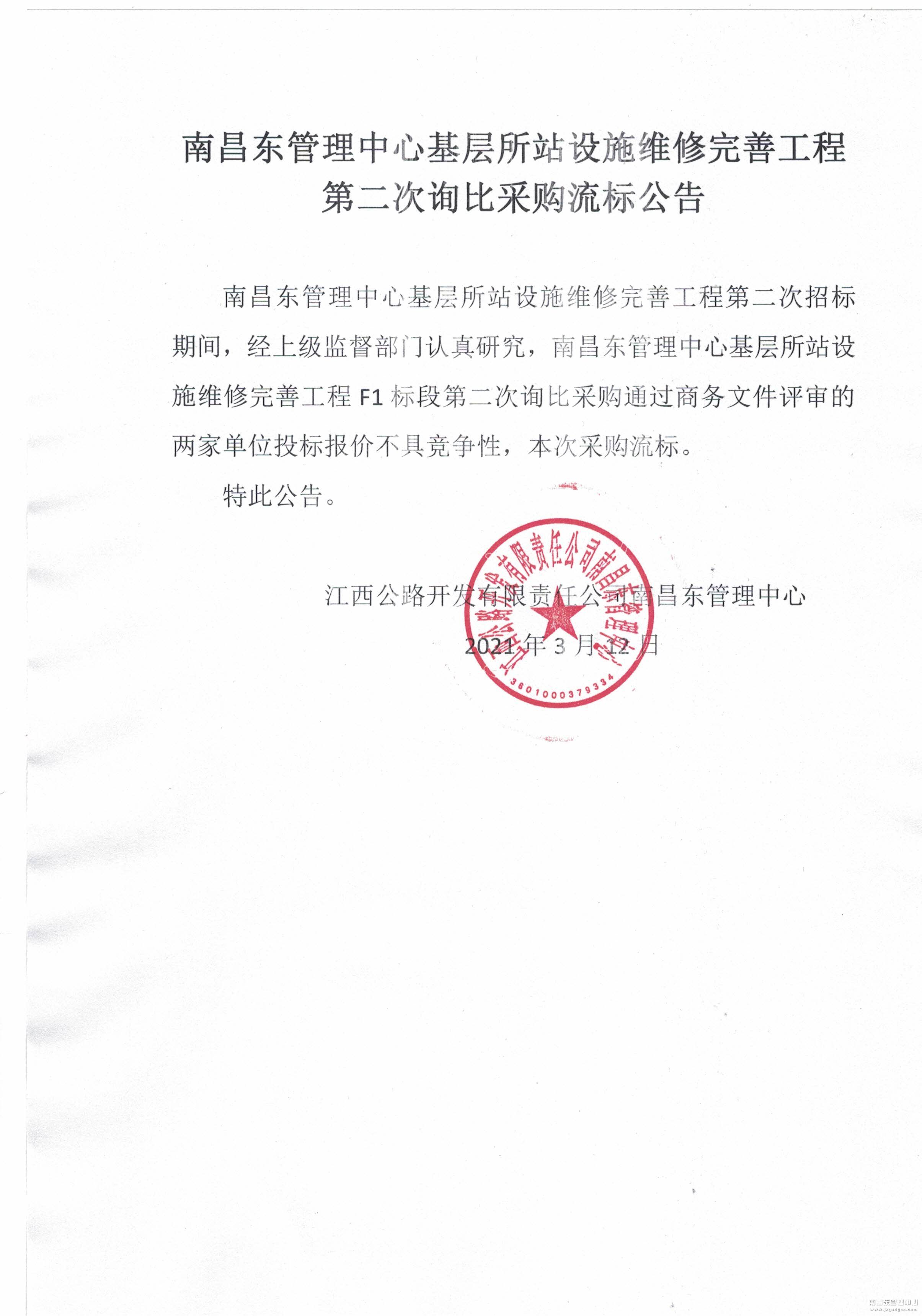南昌南管理中心基层所站设施维修完善工程第二批询价采购流标公告