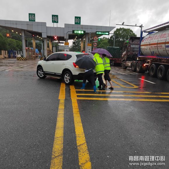 6月13日,南昌南管理中心杨梅岭收费站在开道时有一辆白色轿车停滞在入口ETC车道不远处,值班站长立马上前去询问,经询问得知该车突然断电了,车辆打不着火。