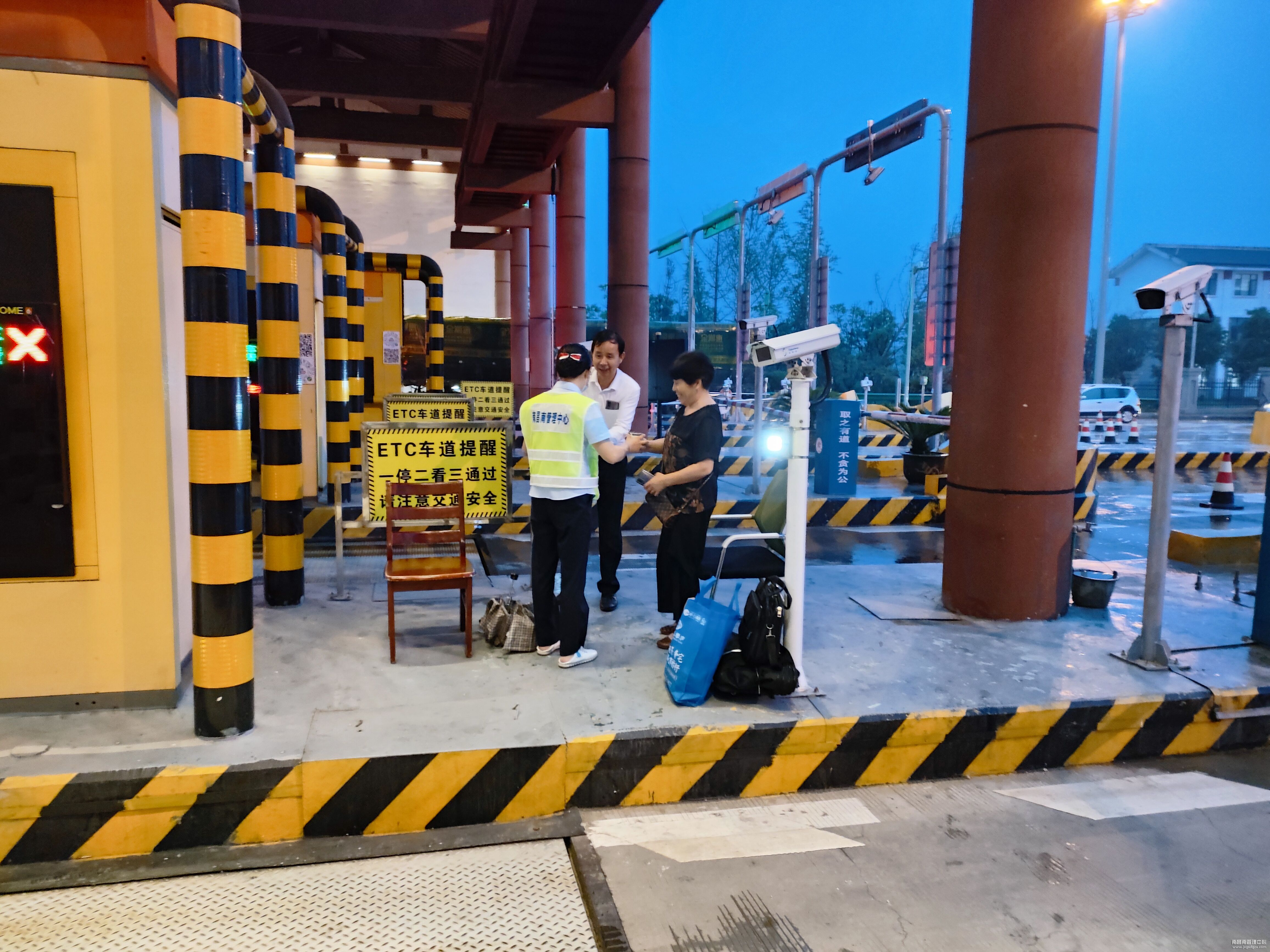 6月19日晚,有一对夫妻冒着暴雨向南昌南管理中心弋阳收费站走来,并向该站寻求帮助。