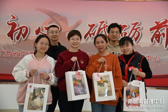 今天是“三八”国际妇女节,南昌南管理中心机关开展专门活动,组织为女同事们送来鲜花,一同送上节日问候和美好祝愿。