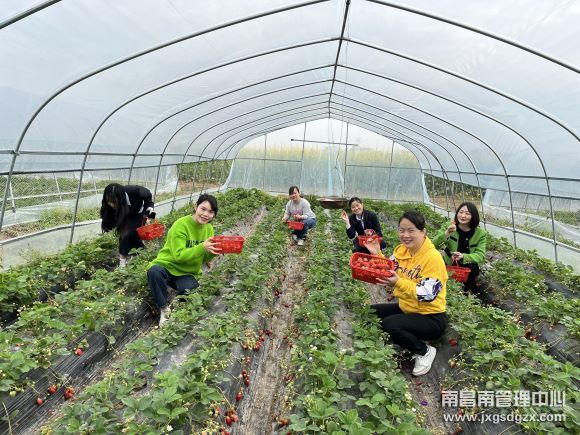 欣赏完花海之后,大家来到了附近的草莓采摘基地,在茂盛的绿叶间点缀着红艳艳的草莓,很是养眼,令人心智大悦。大家开始埋头摘草莓,纷纷在果香四溢的草莓棚内拍照留念。在采摘活动中,现场一直笑声不断。